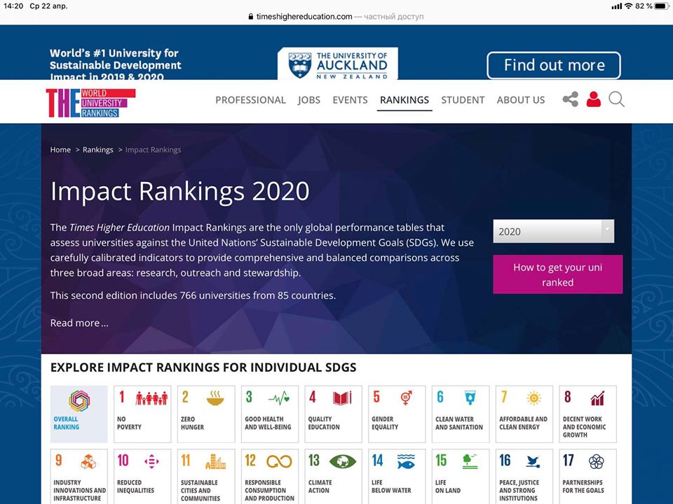 Рейтинг TНE University Impact Rankings посвящен оценке влияния вузов на процесс реализации целей устойчивого развития, сформулированных Организацией Объединенных Наций на период до 2030 года.